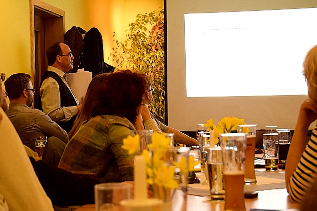so wird uns die Möglichkeit gegeben ein Stück von uns selbst zu entdecken. Dieses Thema hat ca. 60 Personen zu dem Vortrag von Dieter Kastner kommen lassen. Schon um 18 Uhr waren viele Gäste zum Essen eingetroffen, bei Schnitzel, Currywurst oder Bratwurst konnte man sich ordentlich stärken und die Geselligkeit genießen. Der Vortrag war ein voller Erfolg, jeder hatte die Möglichkeit Fragen zu stellen, die auch fachgerecht beantwortet wurden. Dieter Kastner konnte mit vielen hilfreichen Tipps aus seiner Erfahrung weiterhelfen. Seit vielen Jahren befasst er sich intensiv mit seinen Wurzeln. Er zeigte uns Arbeitstechniken der Ahnenforschung, Hilfsmittel und Quellen, die wir nutzen können.